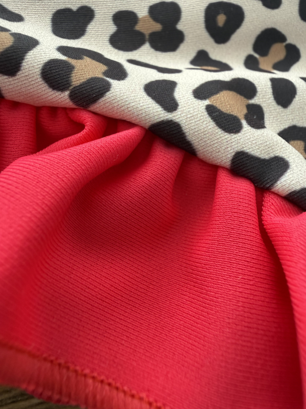 Laat jouw kleine stralen op het strand of bij het zwembad in dit super trendy panterprint meisjes badpak met rode details. De speelse leopard print gecombineerd met de opvallende rode ruffle rand en strik op de rug zorgt voor een unieke, vrolijke en stijlvolle look. Perfect voor kleine fashionista’s die houden van een beetje extra flair.