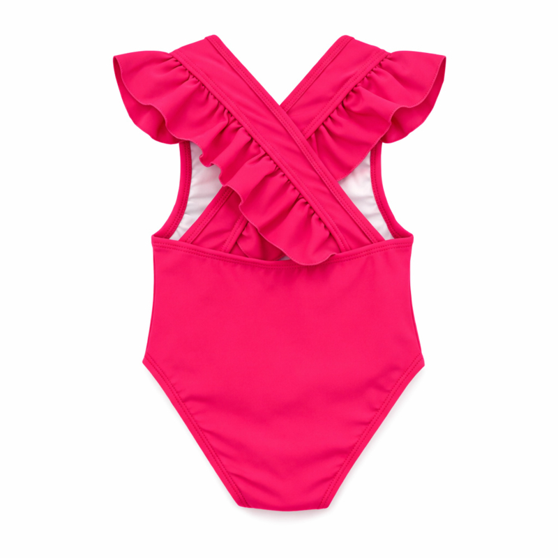 Laat jouw kleine stralen deze zomer in dit onweerstaanbaar schattige roze kinderbadpak met ruffles. De trendy fel rood/roze kleur en de speelse gekruiste bandjes op de rug geven een stijlvolle en luxe uitstraling — perfect voor kleine fashionista’s.
